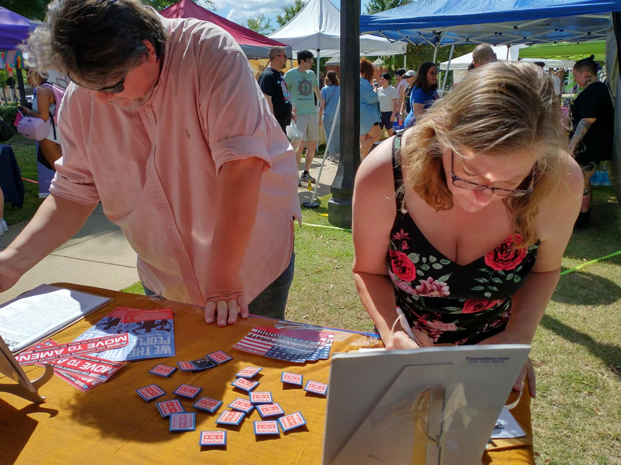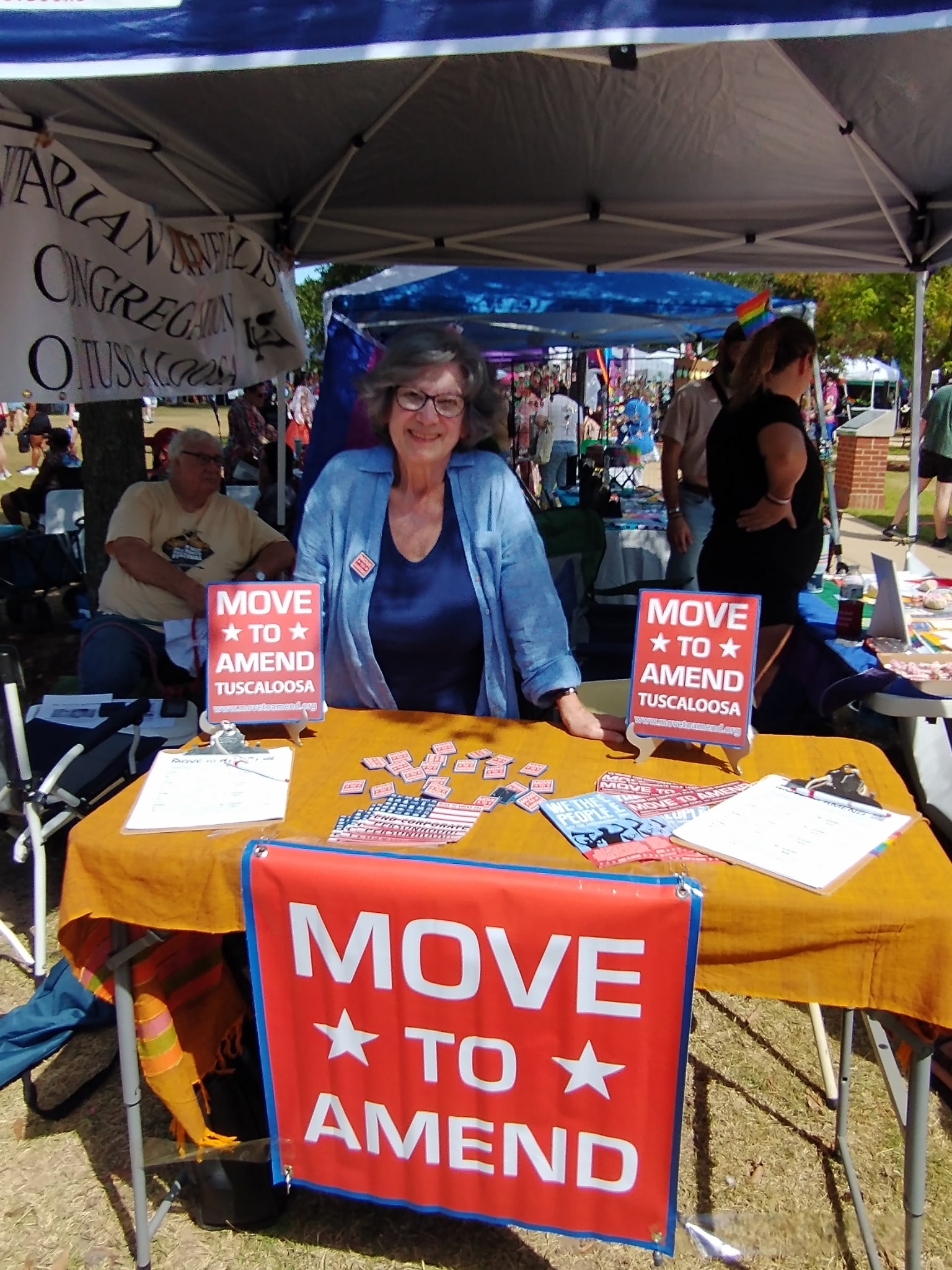 Meanwhile in Tuscaloosa, our newest Affiliate, Kiki, brought Move to Amend to the city’s Pride Festival. Despite the unbearable heat, their team collected multiple petition signatures and connected with community members full of energy for change.