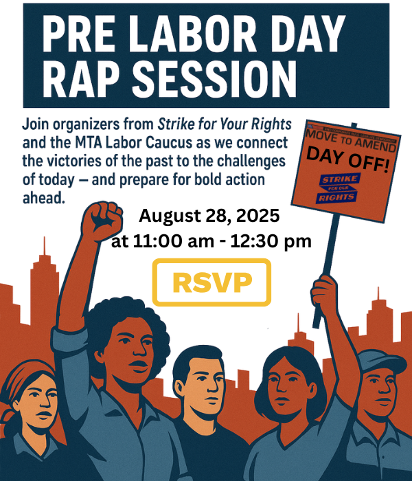 Join organizers from Strike for Your Rights and the MTA Labor Caucus as we connect the victories of the past to the challenges of today — and prepare for bold action ahead.